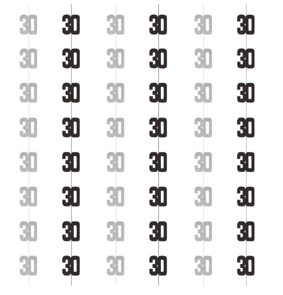 5ft black and silver 30th birthday hanging decorations, 6 pack