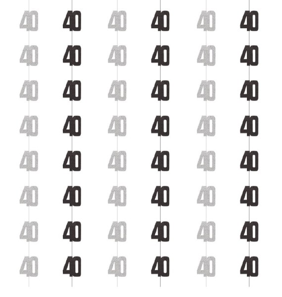 5ft black and silver 40th birthday hanging decorations, 6 pack