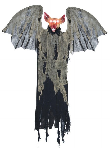 This will scare the "YELL" out of your victims! Light up eyes and head and wings flap. Halloween sounds. Height 48 inches x width 50 inches x depth 8 inches. Requires 3 AA batteries (not included). Sound activated.