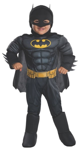 Contains: Muscle chest jumpsuit with attached 3D gauntlets and boot tops, removable cape, belt and fabric mask