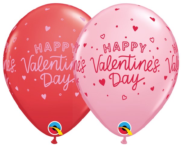 50 ct. Bag Qualatex Assorted Happy Valentine's Day Print 11" Latex Assortment Includes: Red & Pink