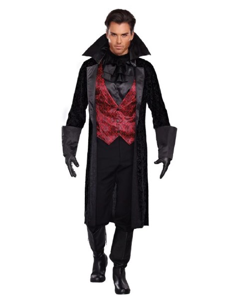 - Velvet Coat with Embossed Scroll Design and Attached Vampire Collar