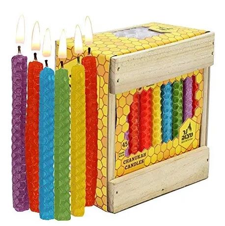 Ner Mitzvah, Multicolor Handmade Natural Beeswax Honeycomb Hanukkah Menorah Candles - Standard Size (45 Pack)