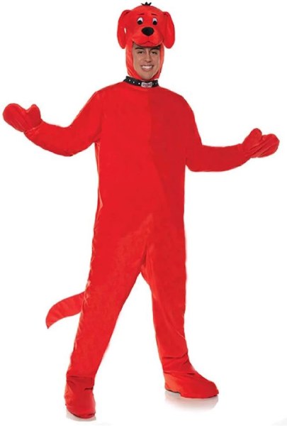 One size fits most. Includes: - Jumpsuit with attached shoe covers and tail - Hood with velcro closure - Mitts