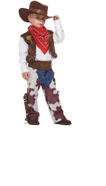 Hat, Vest, Bandana, Chaps Rubie's Toddler Size Guide - TODDLER, 3-4 Years Height: Up To 39in. Waist: Up To 25in. Weights: Up To 34lbs.