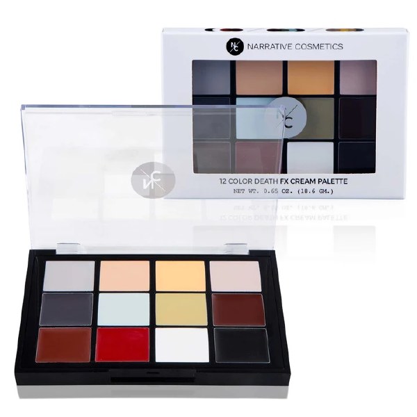 The Death FX Cream Palette can be used to simulate a variety of death appearances including undead, decaying dead, and almost dead effects. The cream makeup is highly pigmented, water, sweat and transfer proof, and dries 2-3 minutes after application. For maximum shelf life, always store the palette in the included airtight bag, and away from light, air and heat. The cream will dry out over time but can be activated with isopropyl alcohol as needed.