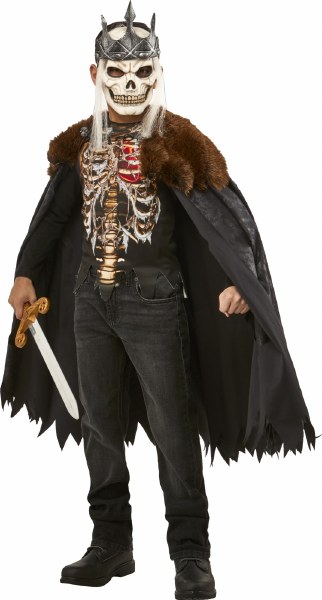 Includes shirt, cape, and mask with crown. Fits sizes 6 to 8.