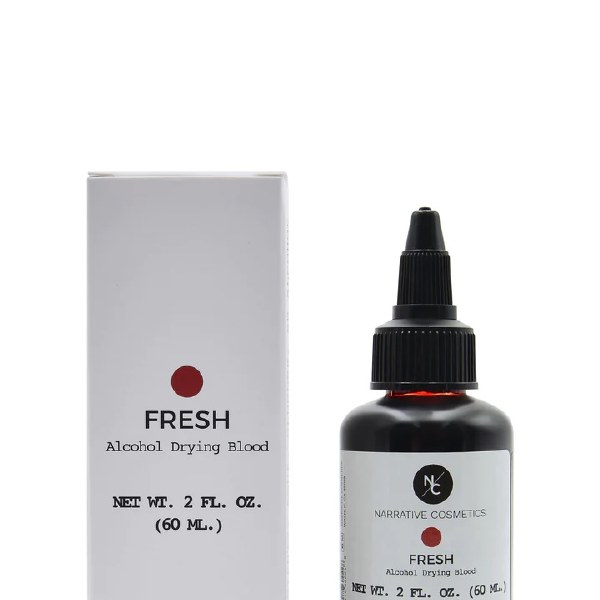 The Narrative Cosmetics alcohol bloods dry to the touch shortly after application while retaining a wet, glossy appearance. This makes the bloods perfect for SFX applications where durability is required.