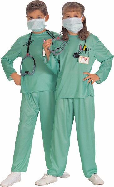Includes shirt, pants, face mask, stethoscope, and name tag. Fits a size 4 to 6.