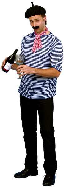Includes: - T-Shirt - Beret - Scarf - Moustache Adult men's size med Chest: 38-40" Waist: 32-34"