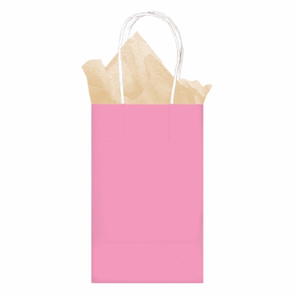 New Pink Solid Kraft Bag w/Handles 8 1/4" H x 5 1/8"W x 3 1/8"D