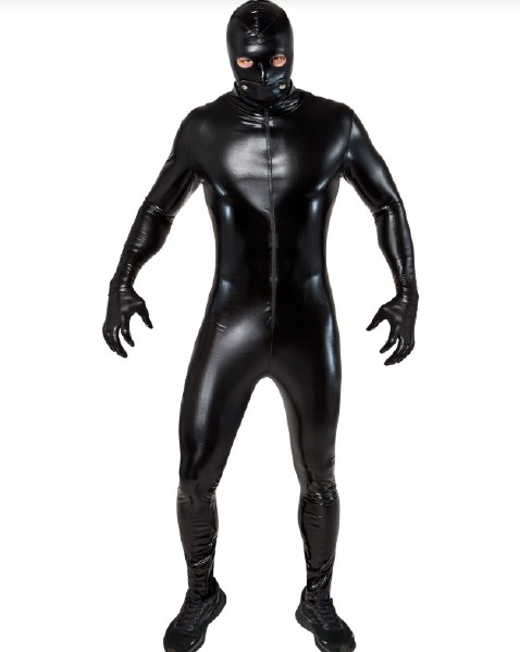Fits men's size XL Includes jumpsuit and mask. Inspired by the Rubber Man from American Horror Story.