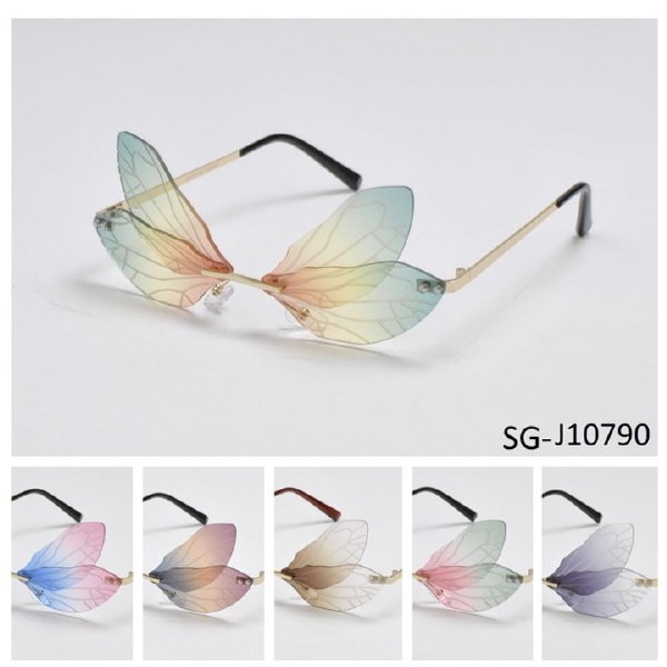 Multicolor lens butterfly wing-shaped sunglasses. Assorted colors.