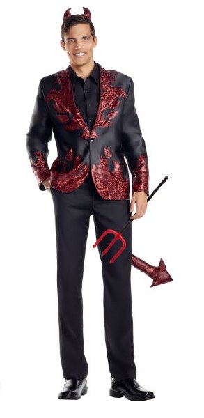 Includes: - Jacket with red detailing and attached tail - Headpiece - Pitchfork