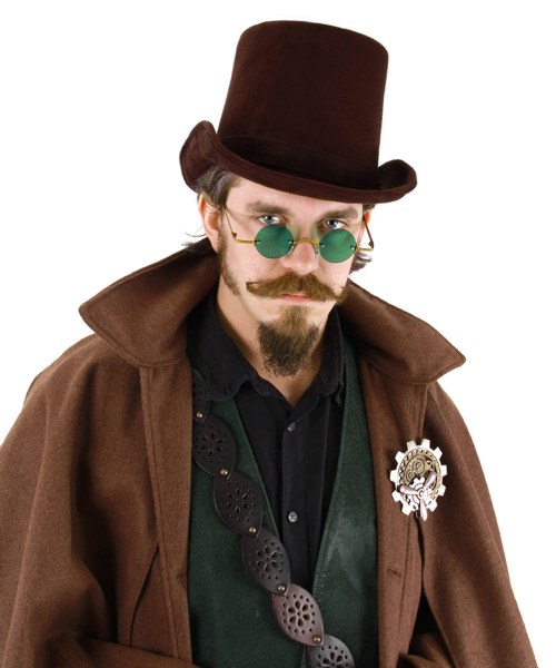 This authentic Coachman by elope is the perfect complement to any Victorian or Steampunk costume! Made from dark brown polyester Ultrasuede with a distressed faux-suede band, form and function blend seamlessly to produce a comfortable and stylish look.