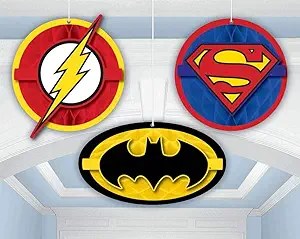 3 x Justice League Honeycomb Balls Hanging Decorations.