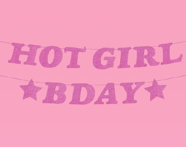 Hot Girl Bday Banner, 5 feet Purple glitter finish - think sparkly + luxe Pre-strung and ready to party