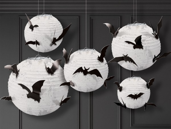 Includes: - 5 lanterns (5.75" - 9.5") - 24 bat add-ons - String & foam tape