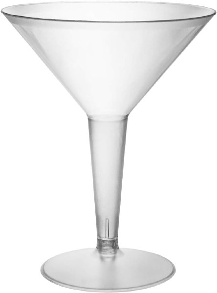 2 PC. MARTINI – CLEAR 10 CT. Kick back and enjoy an ice cold martini. Two-piece design facilitates easy stacking, storing and transporting.