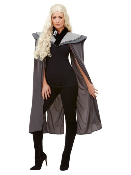 Not even a little bit inspired by Daenerys Targaryen. Grey cape with structured shoulder pads and dragon insignia. Smiffy's Adult Size Guide - One Size Fits Most