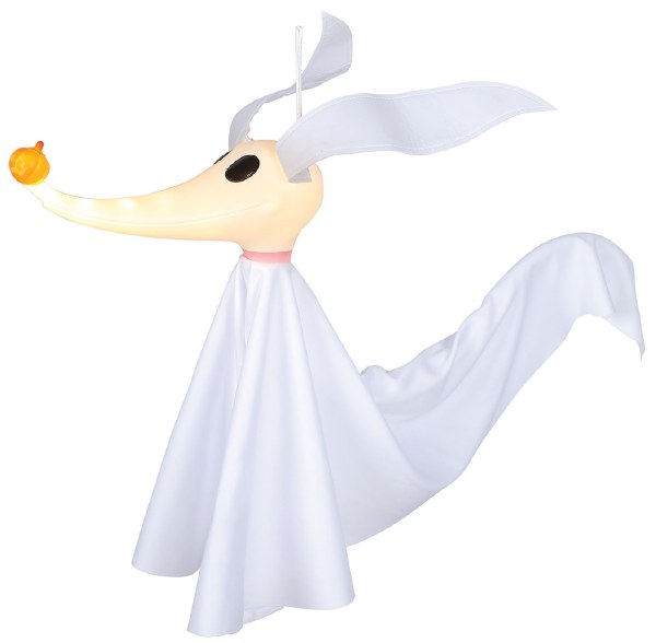 The Nightmare Before Christmas Zero hanging decoration. Features poseable body and ears, and light-up nose. Battery-operated with 3 AG13 batteries included.