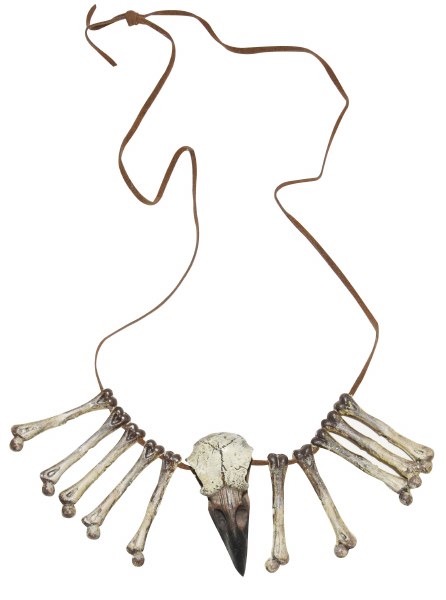 15" brown cord with small bird skull and bones strung along One size fits most adults