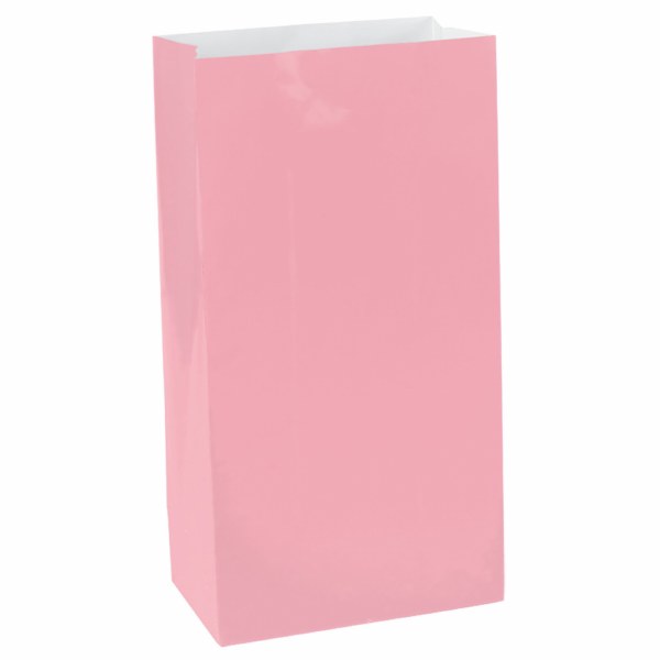 12 count new pink paper loot bags 10" tall x 5.25" wide x 3" deep