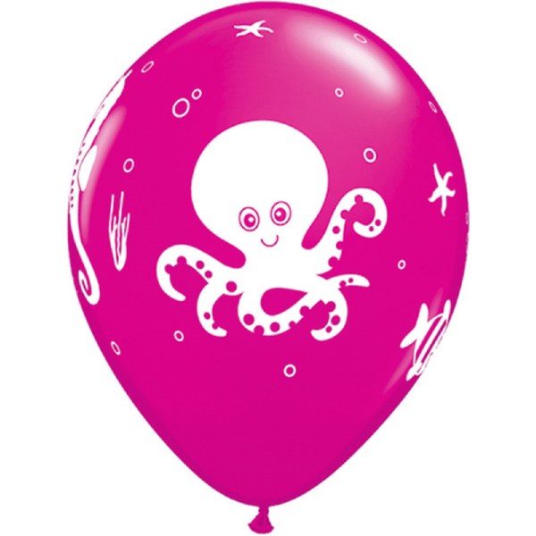 Ocean • Cute Sea Creatures Print 11" Latex Helium Balloon • Wild Berry