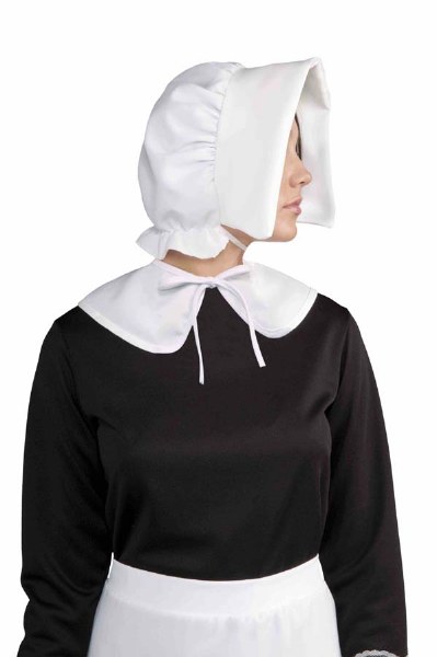 Includes bonnet, collar, cuffs, and apron