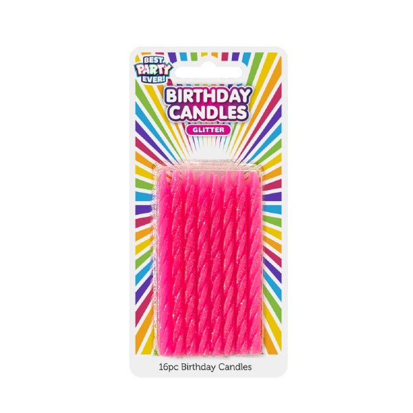 Pink Glitter Birthday Canldles / 16 Count