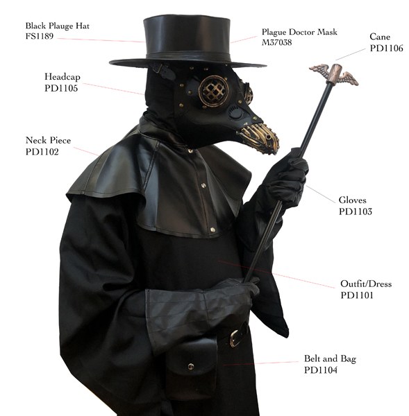 Deluxe Costume includes: - Mask - Robe - Choker - Gloves - Bag - Headgear - Cane One Size Fits Most