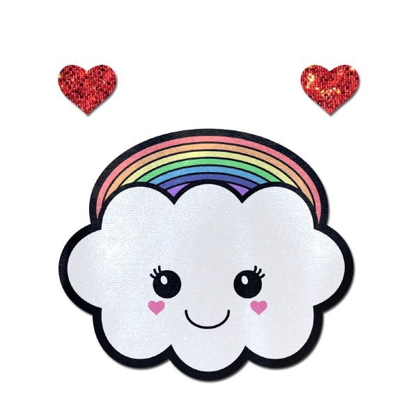 Kawaii Cloud Rainbow & Red Glitter Hearts Body & Everything Stickers by Pocket Full of Fun Contains 1 Cloud and 2 baby hearts