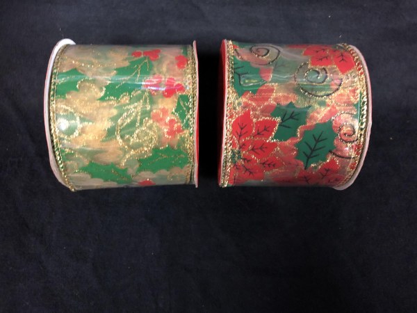 Assorted Ribbon - 9 feet long and 2.5in wide Choose between Holly (left) and Poinsetta (right) Call our e-mail our store to make your decision!