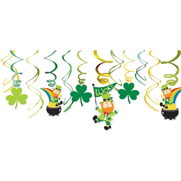 St. Patrick's Day Leprechaun Hanging Swirl Decor ~ 12 Pieces