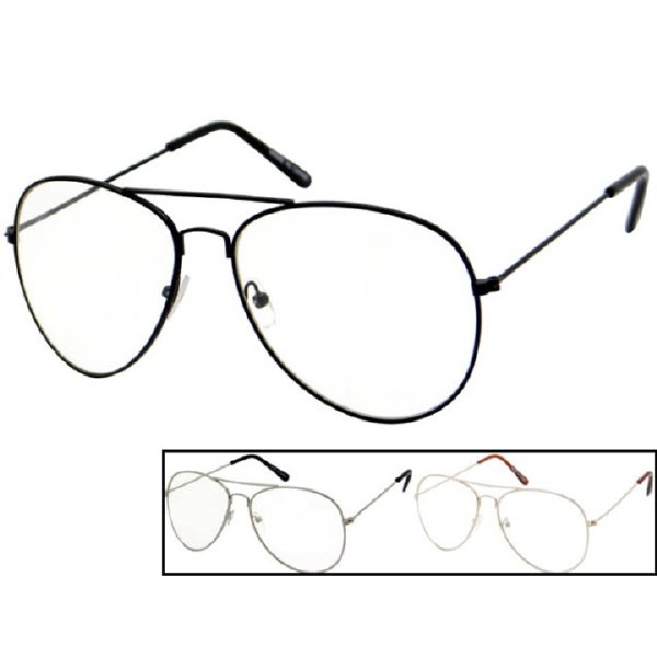 Aviator glasses with clear lenses. Assorted frame colors.