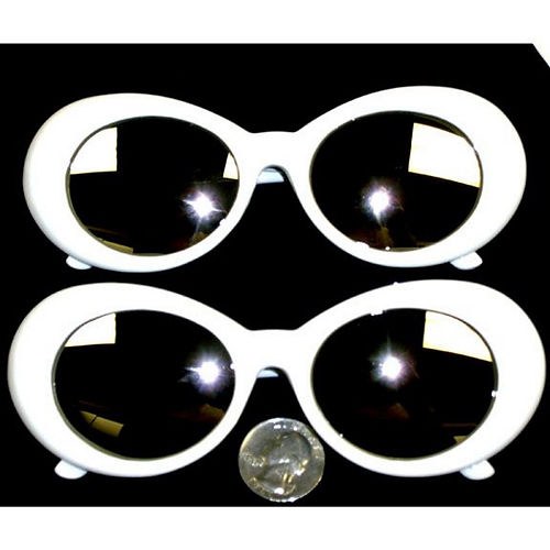 Jackie O-style thick white oval frame sunglasses. Sold individually.