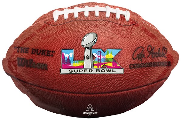 Superbowl LX Football Shape • Standard Size 18" Mylar Helium Balloon