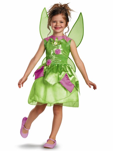 Child size 4-6, fits a 3-4 year old Includes dress with character cameo and detachable wings