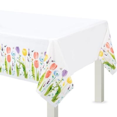 Tulip Garden Plastic Tablecover 54in. x 102in.