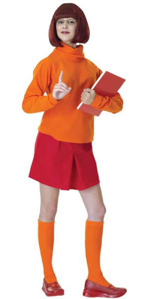 Licensed Scooby Doo character Velma Dinkley adult costume in size Standard (M) Includes: shirt, skirt, wig, and glasses (what would she do without her glasses??)