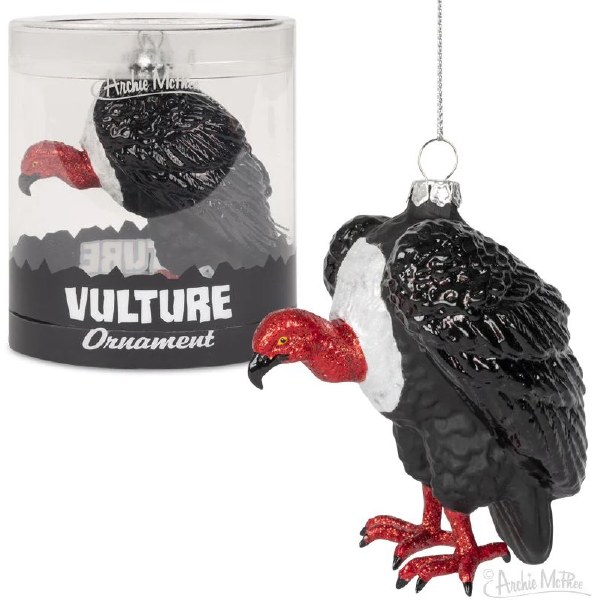 VULTURE ORNAMENT - 3-1/2" tall glass ornament - Vulture with glitter - Looks for roadkill under the tree - Includes string