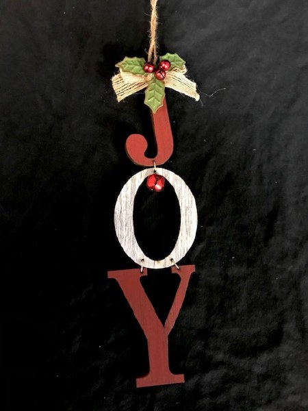 Wooden JOY Ornament w/ Bells